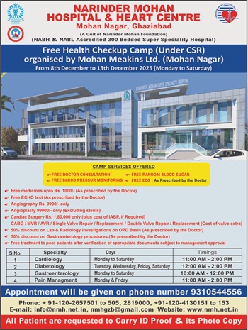 The hospital is named as NARINDER MOHAN HOSPITAL & HEART CENTRE which is a charitable institution. The founder of this hospital is Late Padma Shri Narinder Nath Mohan, who was the Managing Director of Mohan Meakins Limited.
